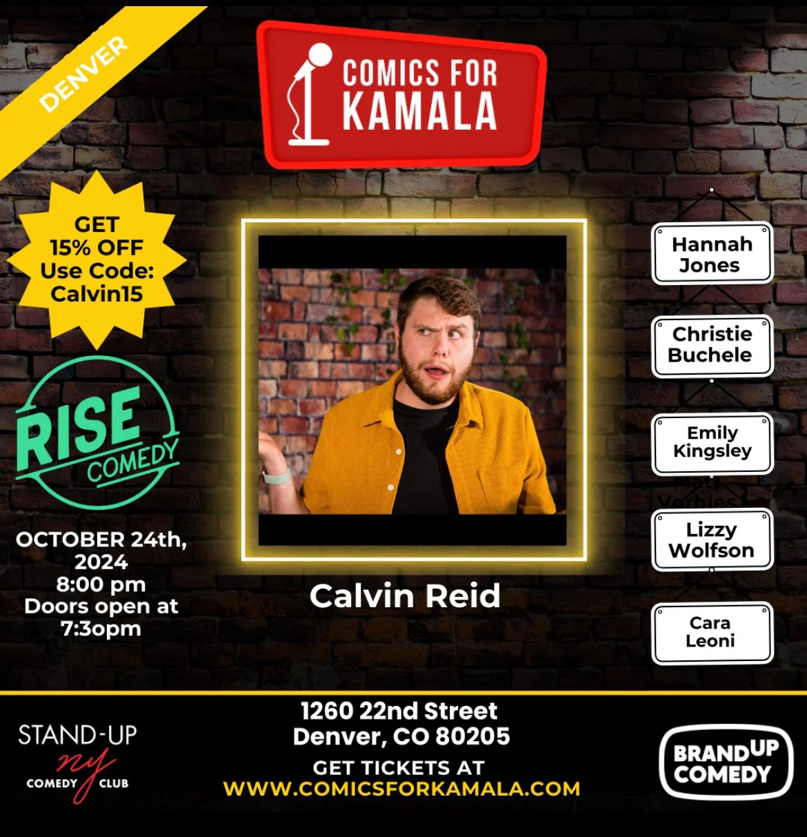 Calvin is a Denver born and raised comedian and award winning performer who has performed in shows/festivals across the state and country. You can see him in the outside world drinking overpriced iced coffees and watching drag race. He’s usually featured on YouTube in videos he’s truly embarrassed by and that he hopes you never find. He has also been recently seen headline the CO Queer Comedy Festival and the Rise Comedy Festival.
